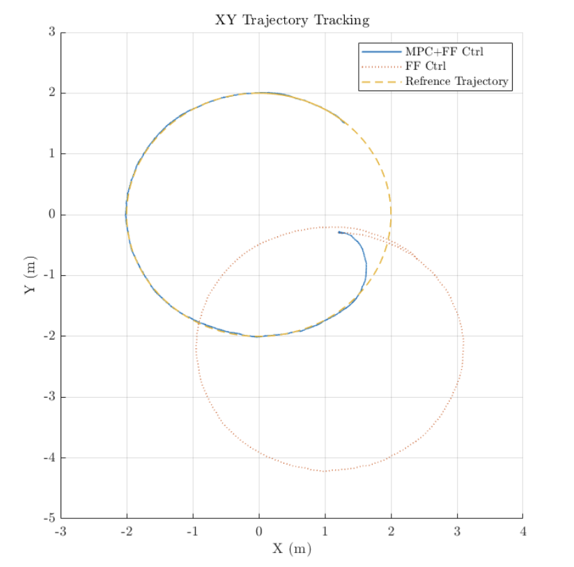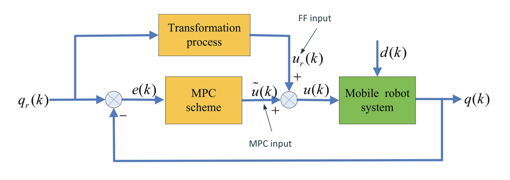 - The feedforward control inputs are calculated from the reference trajectories (assuming the robot is already on the path) while the MPC controller ensures tracking of the reference signal